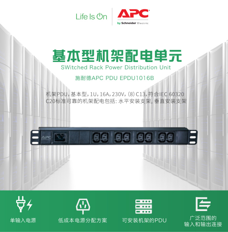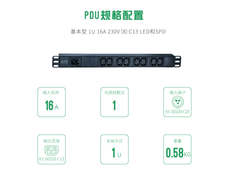 施耐德(APC)EPDU1016B 机架式PDU插座电源分配单元 16A 8位C13接口