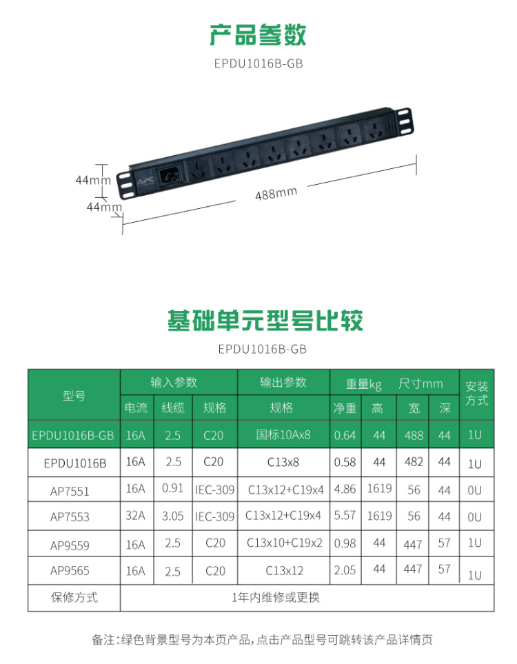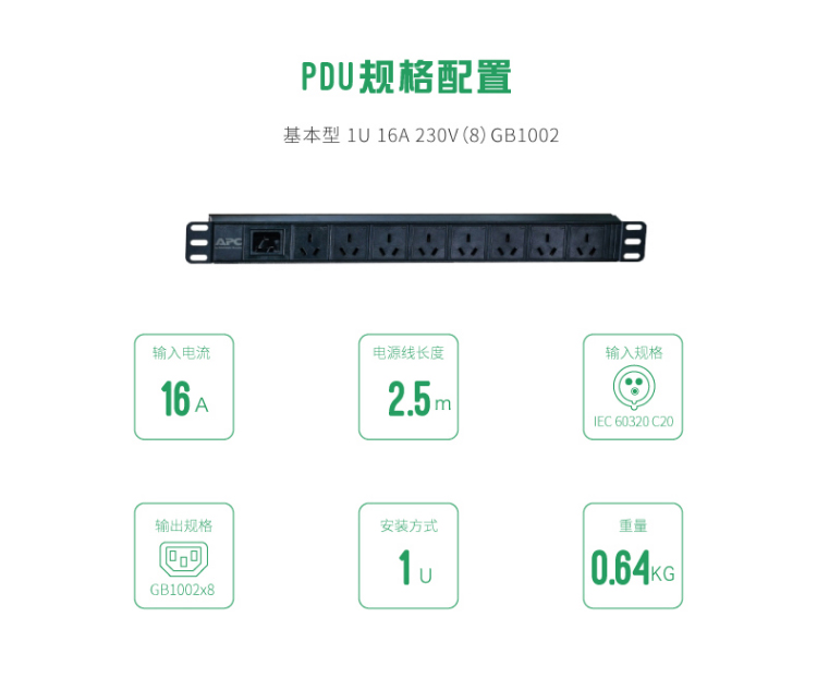 施耐德(APC)EPDU1016B-GB PDU插座电源分配单元替代原AP6201CH 16A