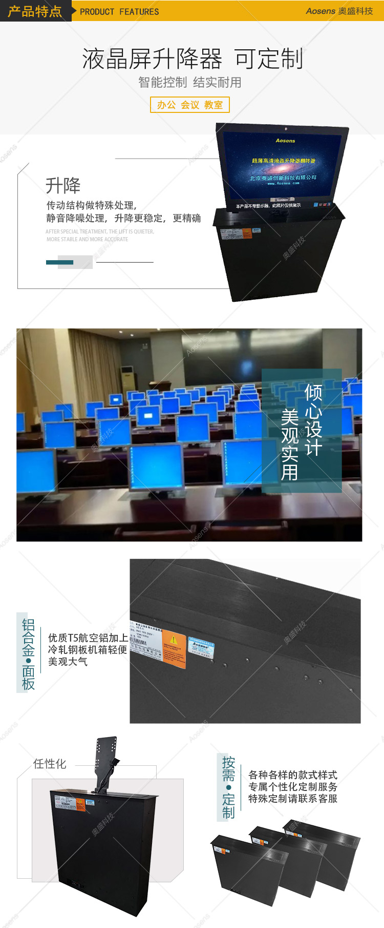 Aosens奥盛 17英寸液晶屏升降器自由更换会议桌电脑显示屏厂家AS-OS170N