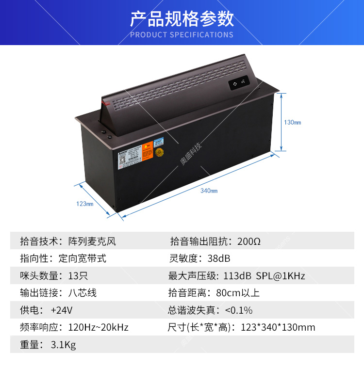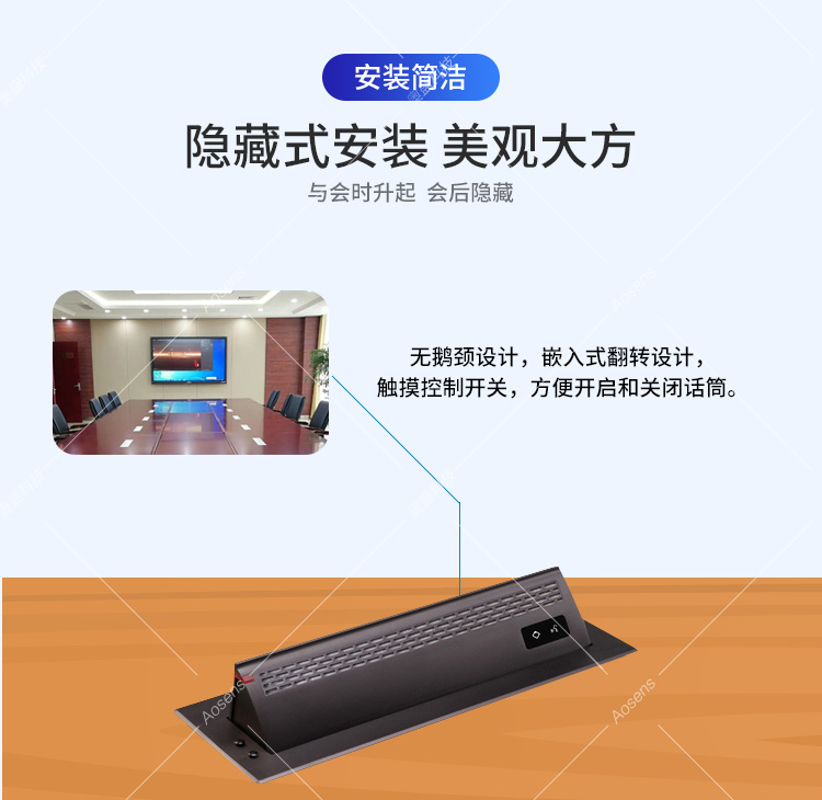 Aosens奥盛 专业会议数字阵列式麦克风无纸化会议话筒电动翻转阵列话筒