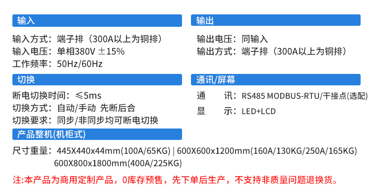奥盛 三相100A~400A 380V静态双电源切换器380V机柜式 AS-STS