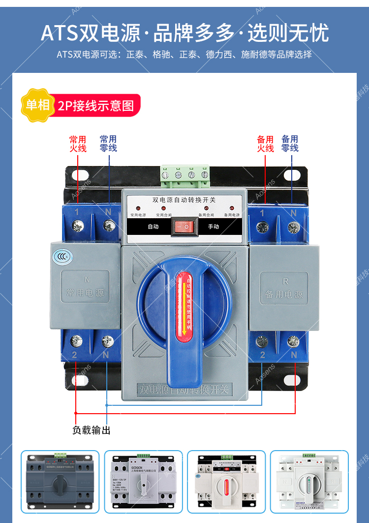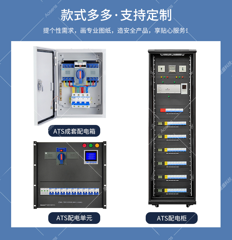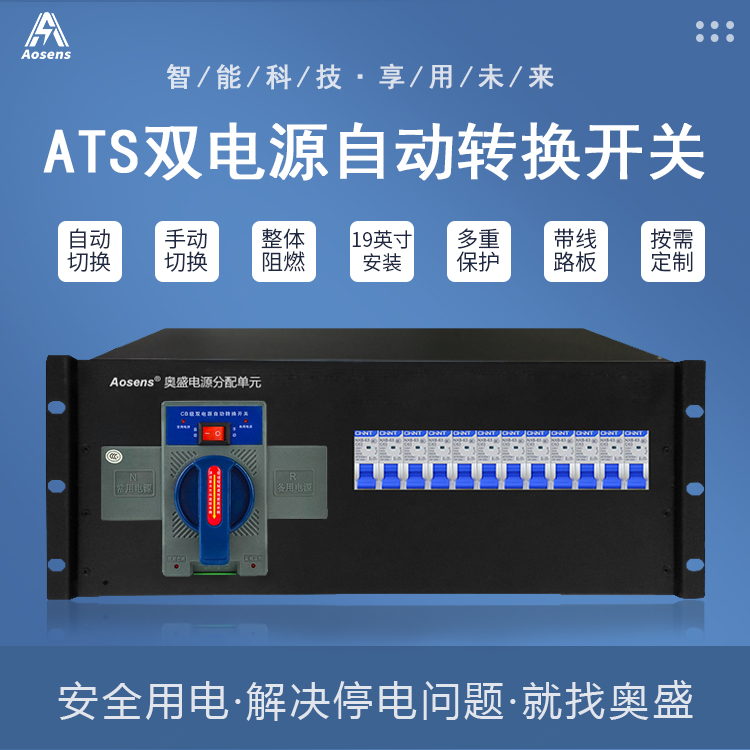 Aosens奥盛63A单相ATS双电源自动转换配电单元4U机架式市电UPS电源切换
