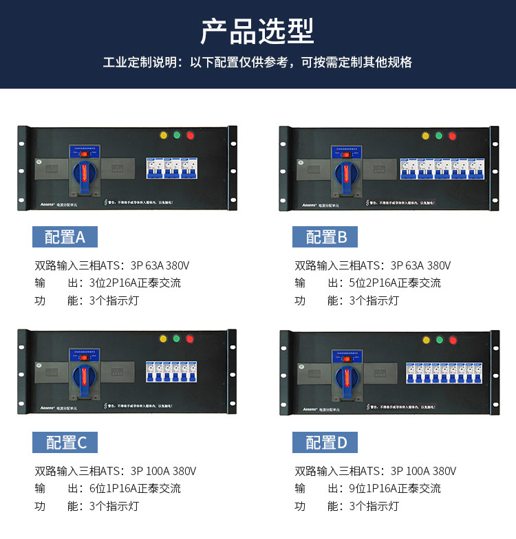Aosens奥盛63A三相ATS双电源自动转换配电单元4U机架式市电UPS电源切换
