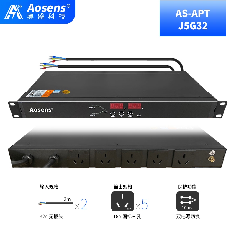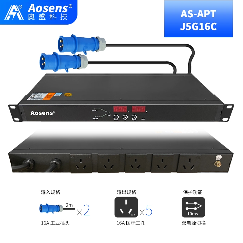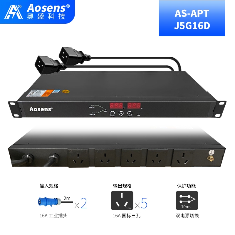 奥盛(Aosens) 5位16A三孔 双电源静态切换器 双路ATS自动转换开关PDU AS-APT
