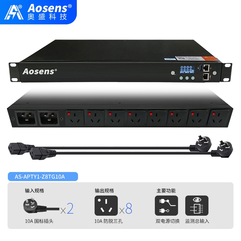奥盛10A国标双路ATS切换器防脱三孔市电UPS自动切换PDU不断电 AS-APTY