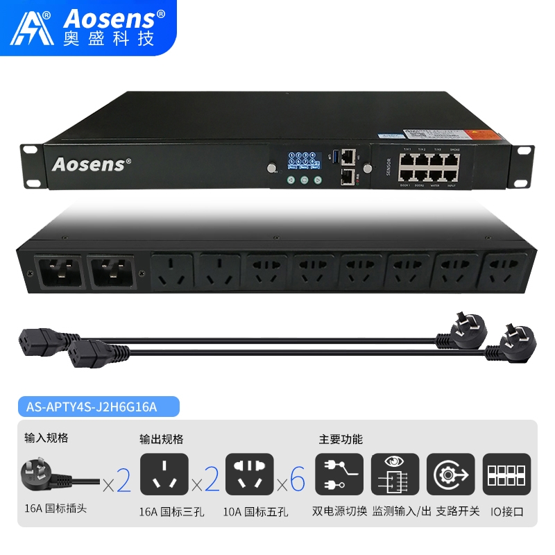 奥盛16A国标双路ATS切换器10A五孔市电UPS自动切换PDU不断电 国标三孔 AS-APTY