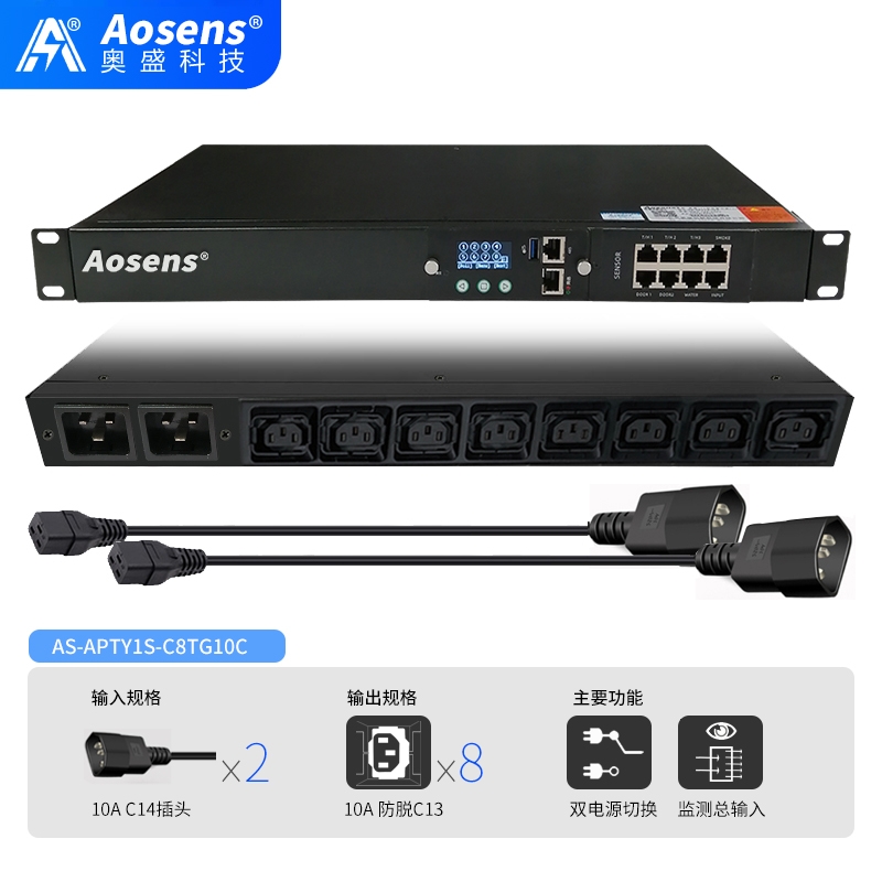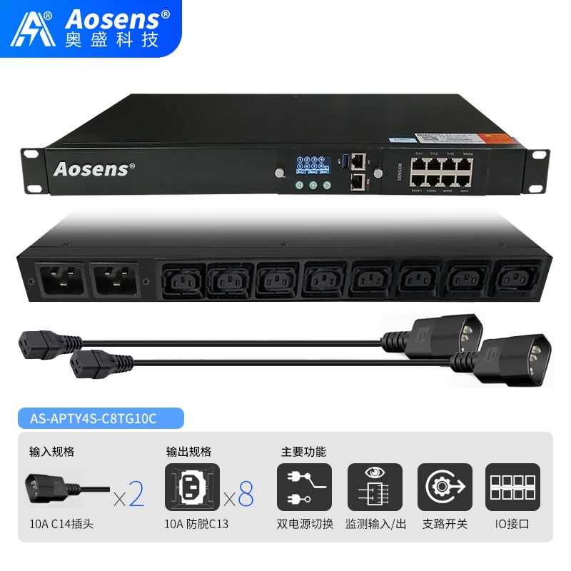 奥盛10AC14双路ATS切换器C13防脱市电UPS自动切换PDU不断电AS-APTY