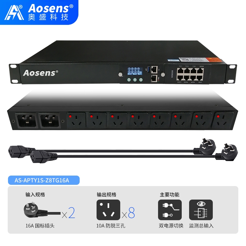 奥盛16A国标双路ATS切换器10A三孔市电UPS自动切换PDU不断电 AS-APTY