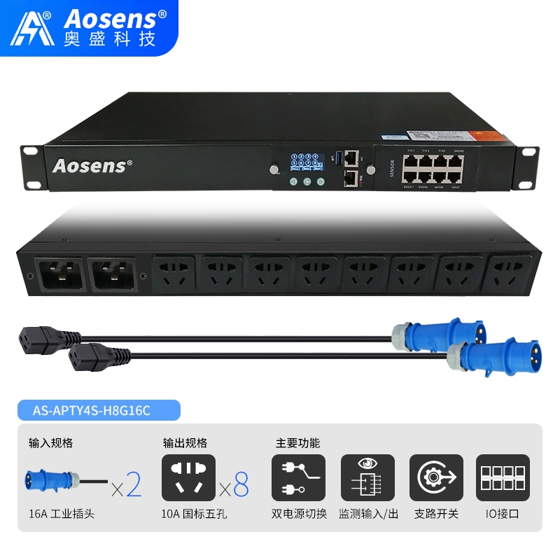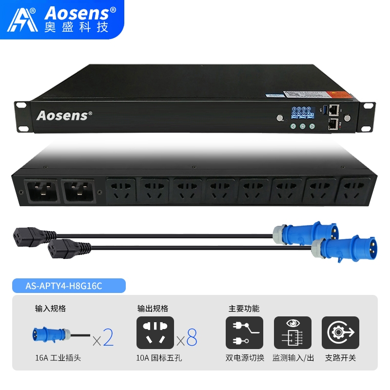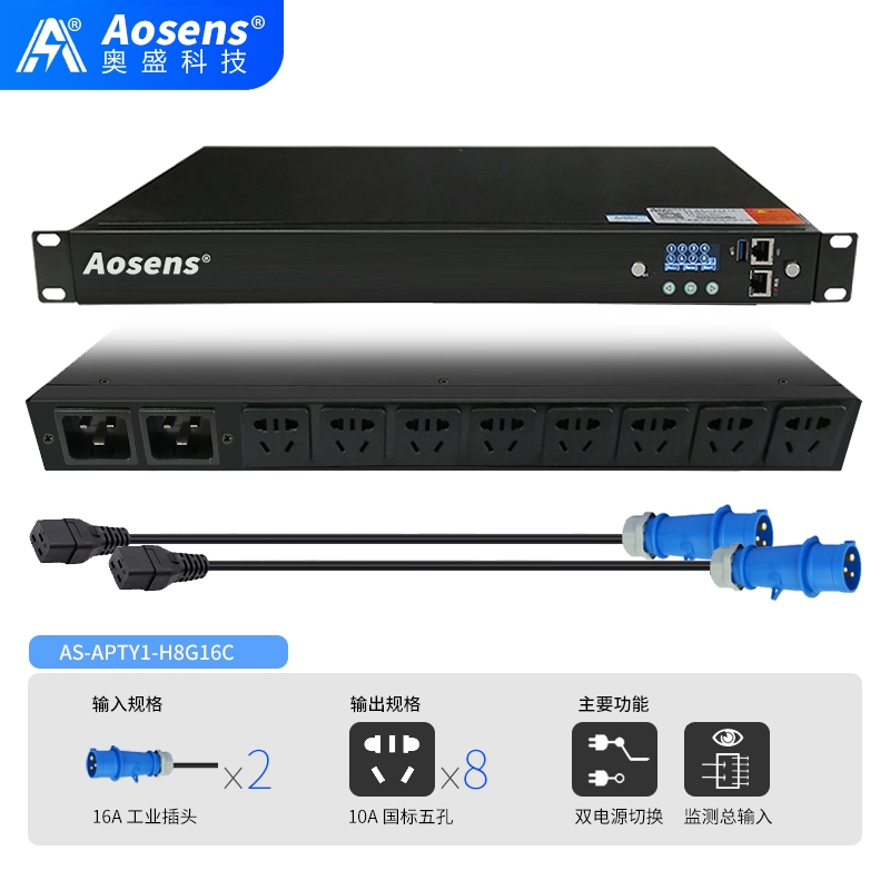 奥盛16A工业双路ATS切换器8位五孔市电UPS自动切换PDU不断电 AS-APTY