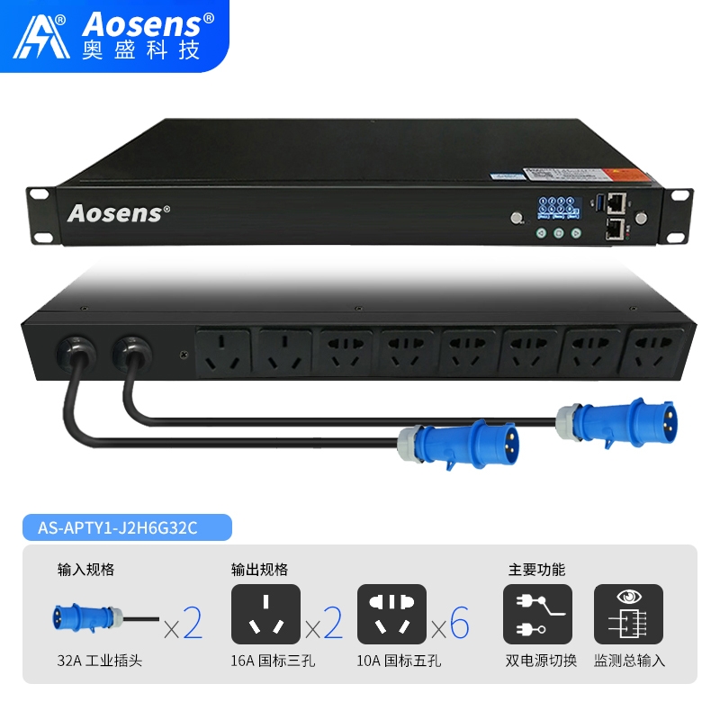 奥盛 32A工业双路ATS切换器16A国标市电UPS自动切换PDU不断电 AS-APTY