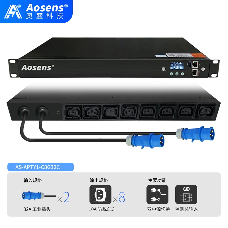 奥盛32A工业双路ATS切换器10AC13市电UPS自动切换PDU不断电AS-APTY