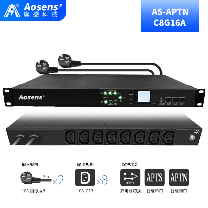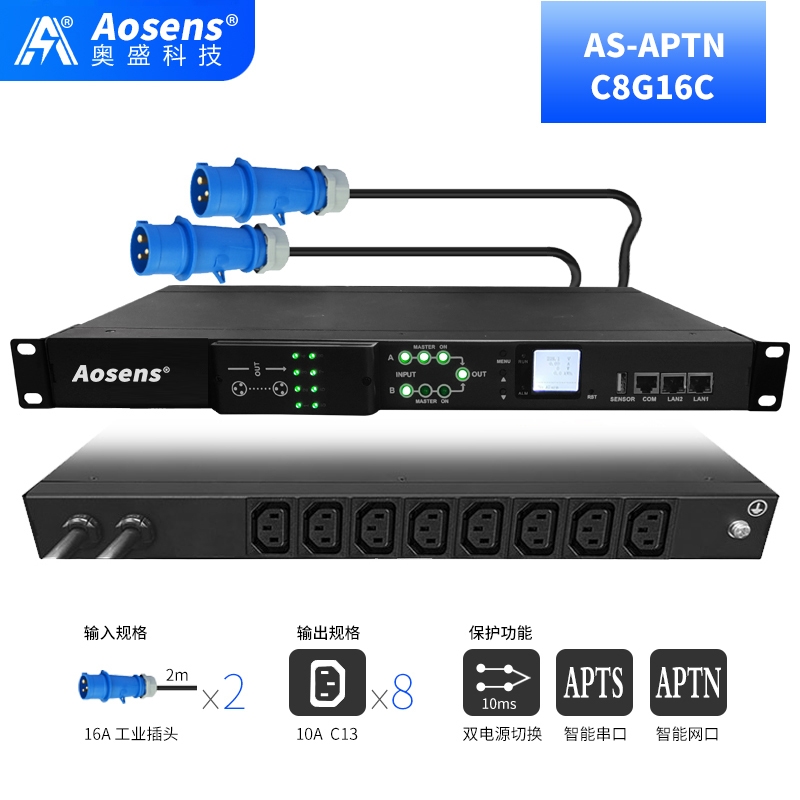 奥盛(Aosens) 16A智能ATS双电源切换器SNMP静态切换开关远程控制 AS-APTN