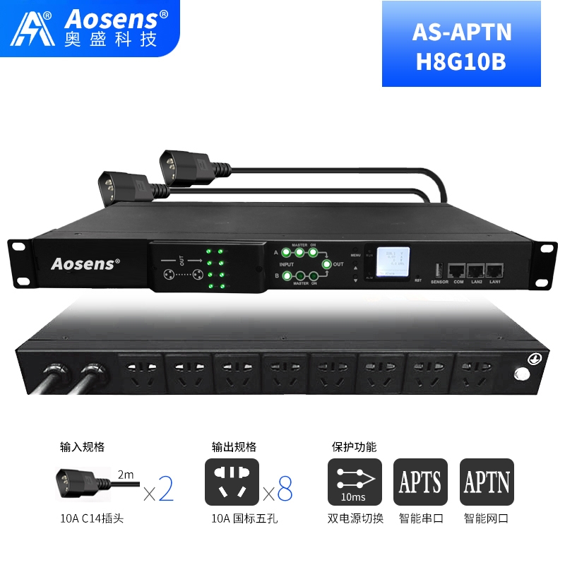 奥盛(Aosens) 10A智能ATS双电源切换器SNMP静态切换开关8位五孔远程控制 AS-APTN
