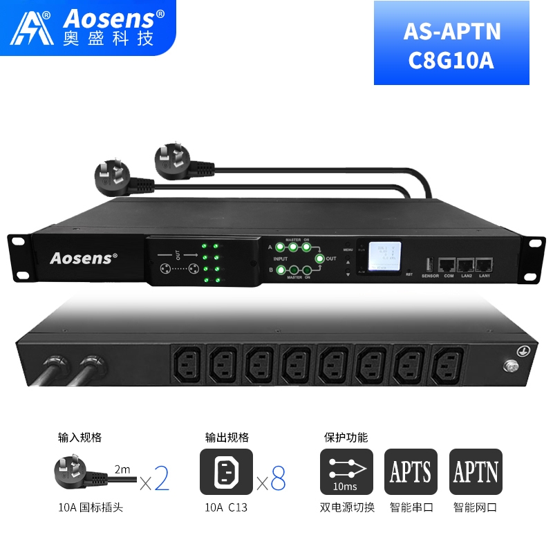 奥盛(Aosens) 10A智能ATS双电源切换器SNMP静态切换开关8位C13远程控制 AS-APTN