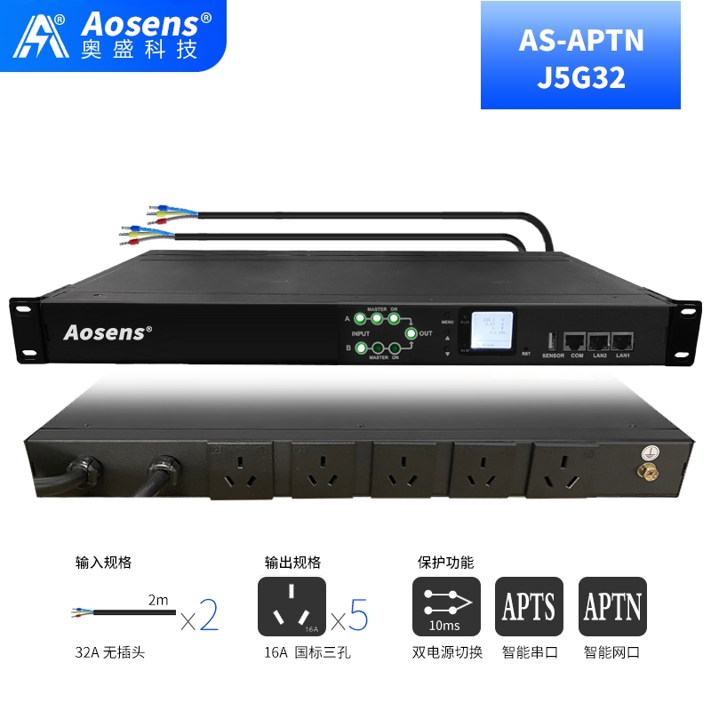 奥盛(Aosens) 32A智能ATS双电源切换器SNMP静态切换开关国标三孔远程控制 AS-APTN