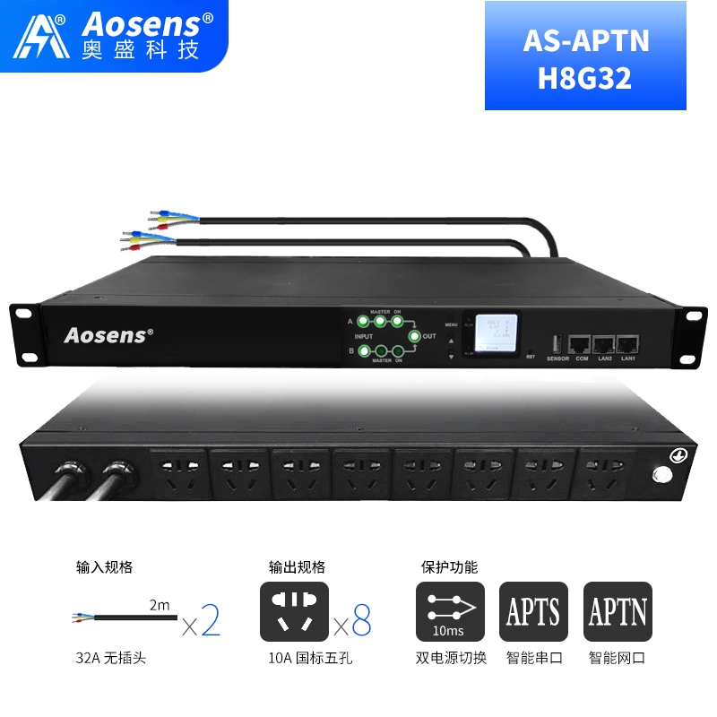 奥盛(Aosens) 32A智能ATS双电源切换器SNMP静态切换开关10A五孔远程控制 AS-APTN