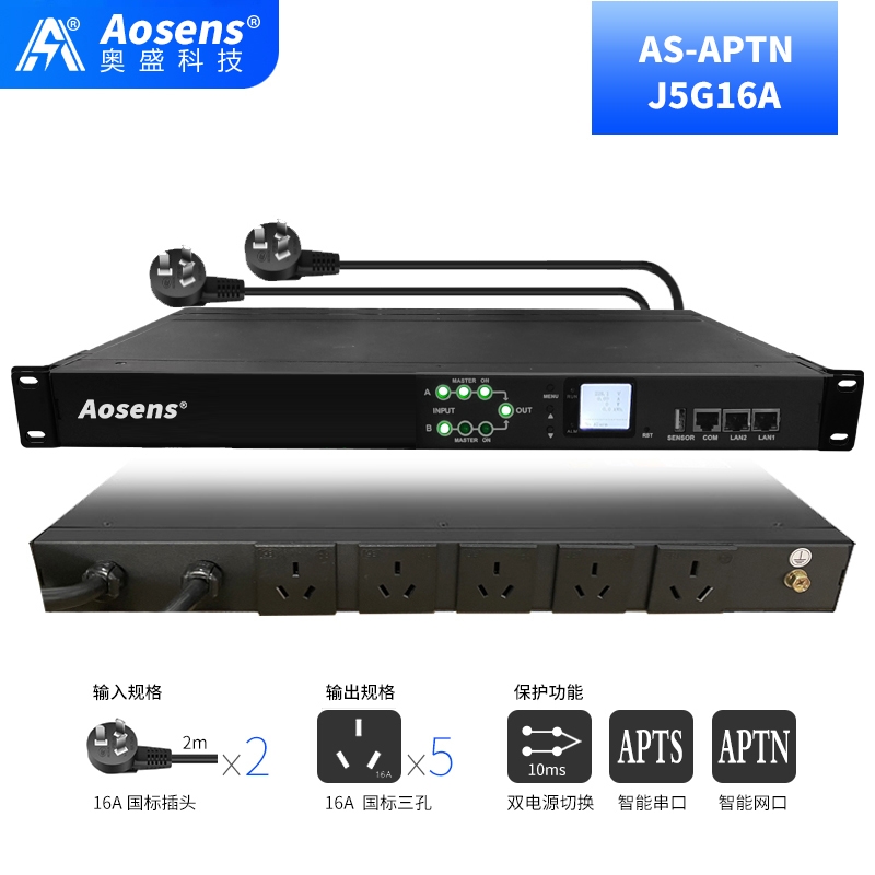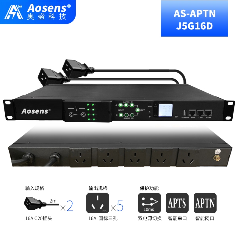 奥盛(Aosens) 16A智能ATS双电源切换器SNMP静态切换开关 国标三孔 远程控制 AS-APTN