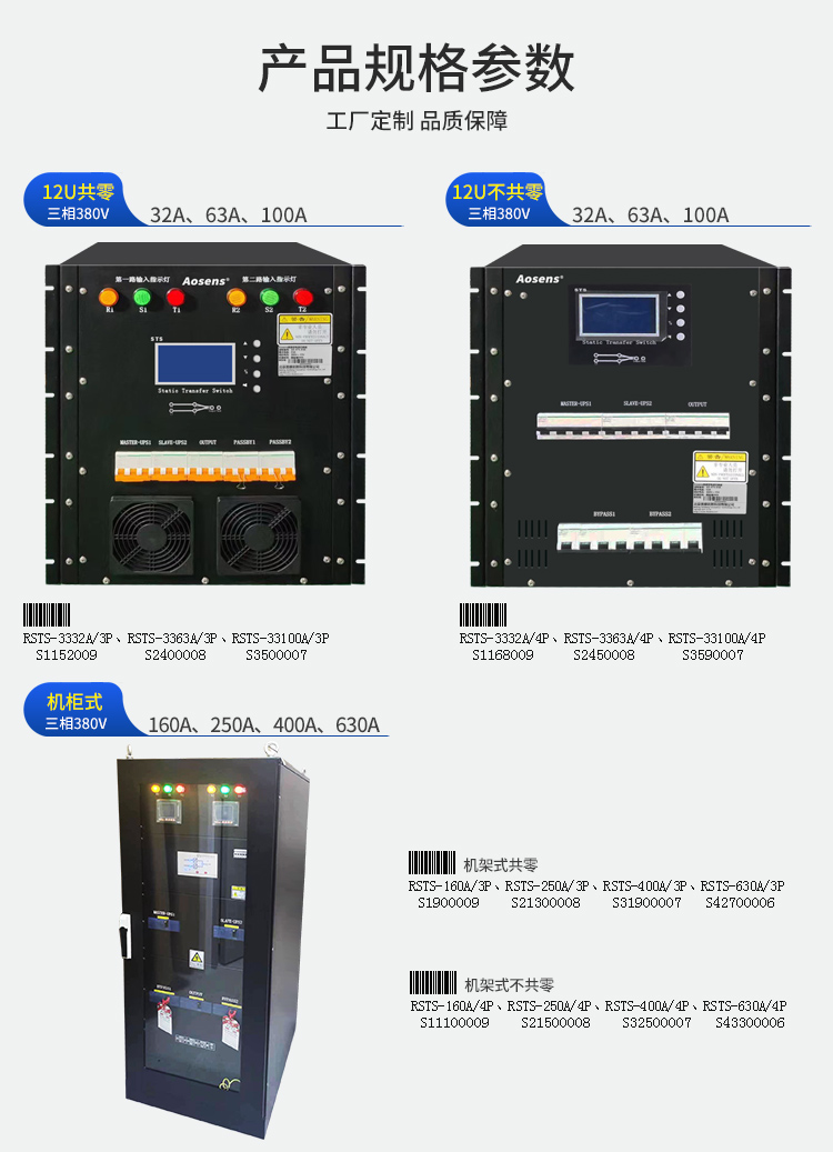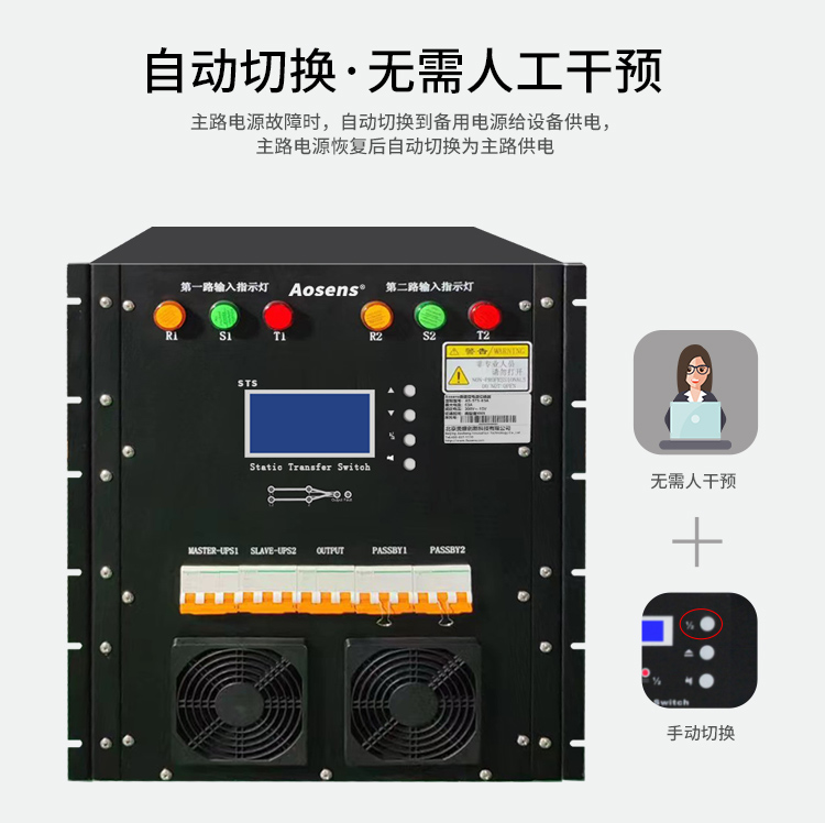 奥盛STS静态双电源切换开关市电UPS自动转换100A 380V三相 不共零 AS-RSTS