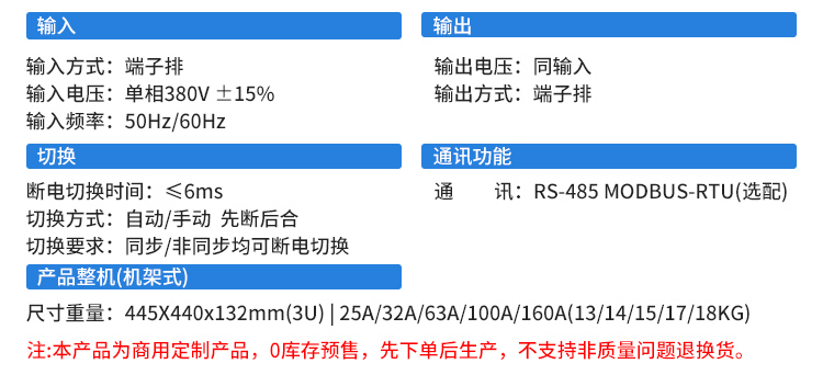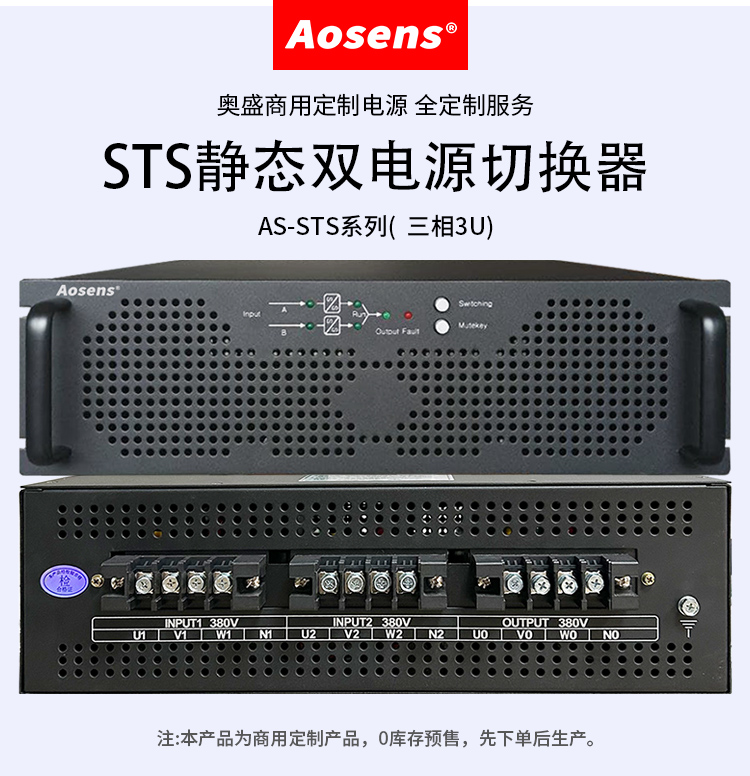 Aosens奥盛 三相3U 25A 32A 40A静态双电源切换器380V端子输出AS-STS-33