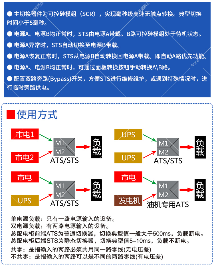 奥盛 壁挂式32A STS静态转换开关双电源切换开关63A 三相100A