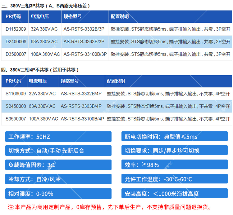 奥盛STS静态转换开关380V壁挂32A三相RSTS双电源切换100A RSTS