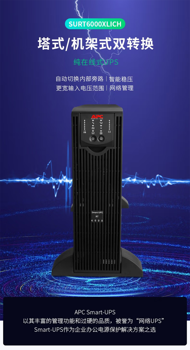 APC SURT6000XLICH UPS不间断电源 4200W6000VA 在线式适用企业 2年保修上门