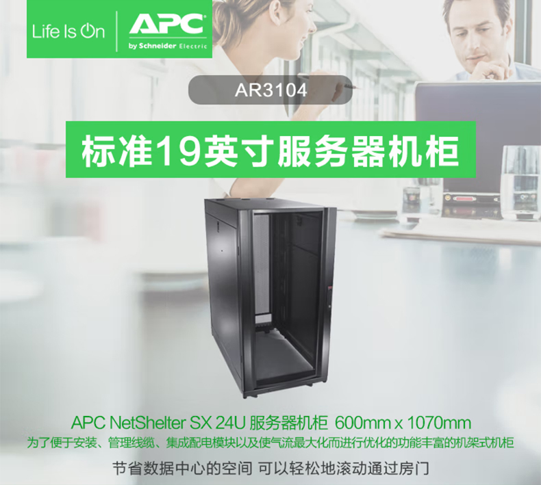 APC 施耐德 AR3104 24U 服务器机柜 600mm x1070mm 黑色