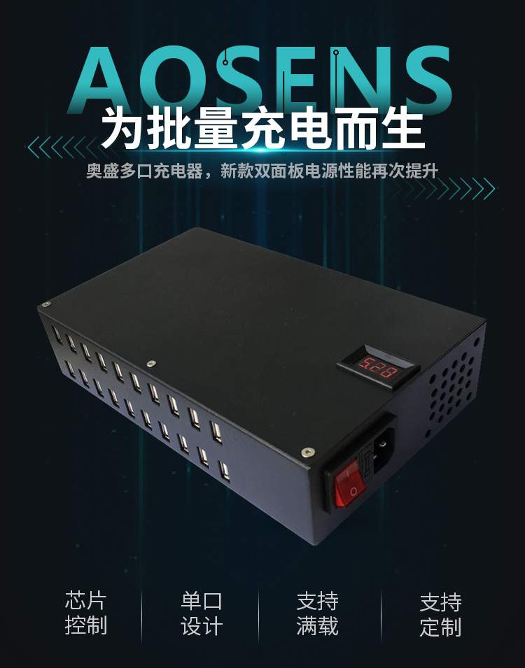 Aosens奥盛 多口充电器usb20孔插座手机工作室充电桩多功能多接口排插