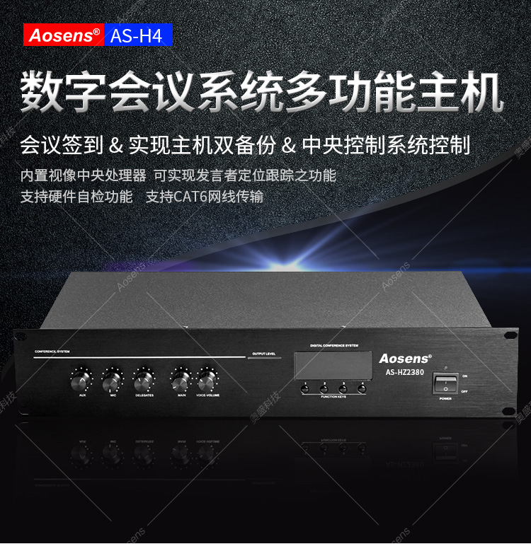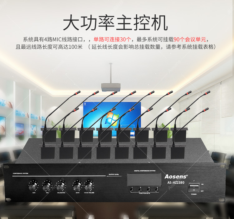 Aosens奥盛 智能会议室有线数字讨论型手拉手麦克风会议系统主机 阵列式