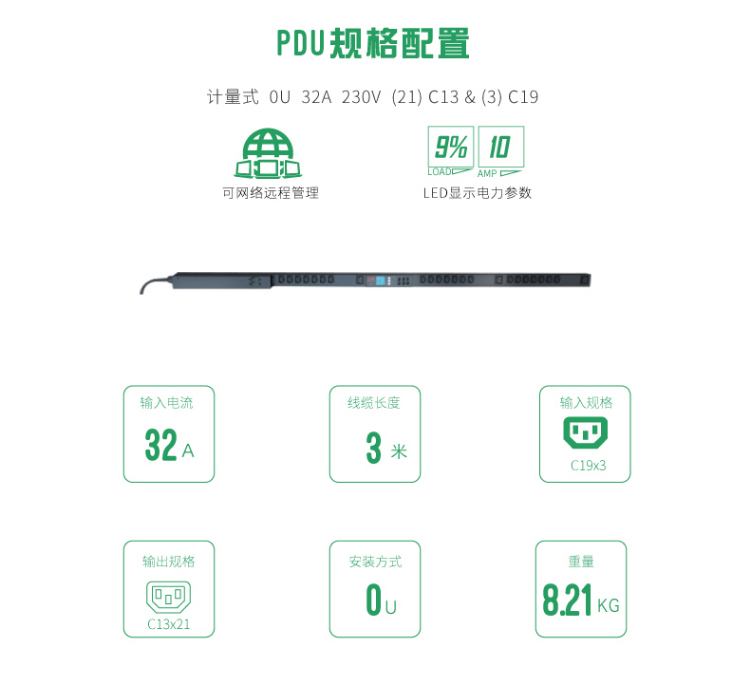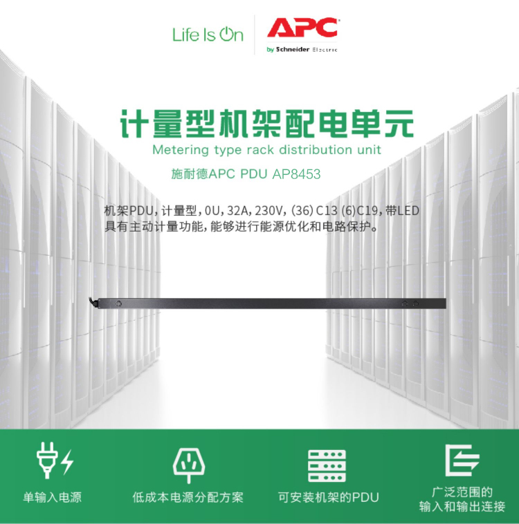 施耐德(APC)AP8453 PDU计量型 0U 32A 230V 21个C13 +3个 C19
