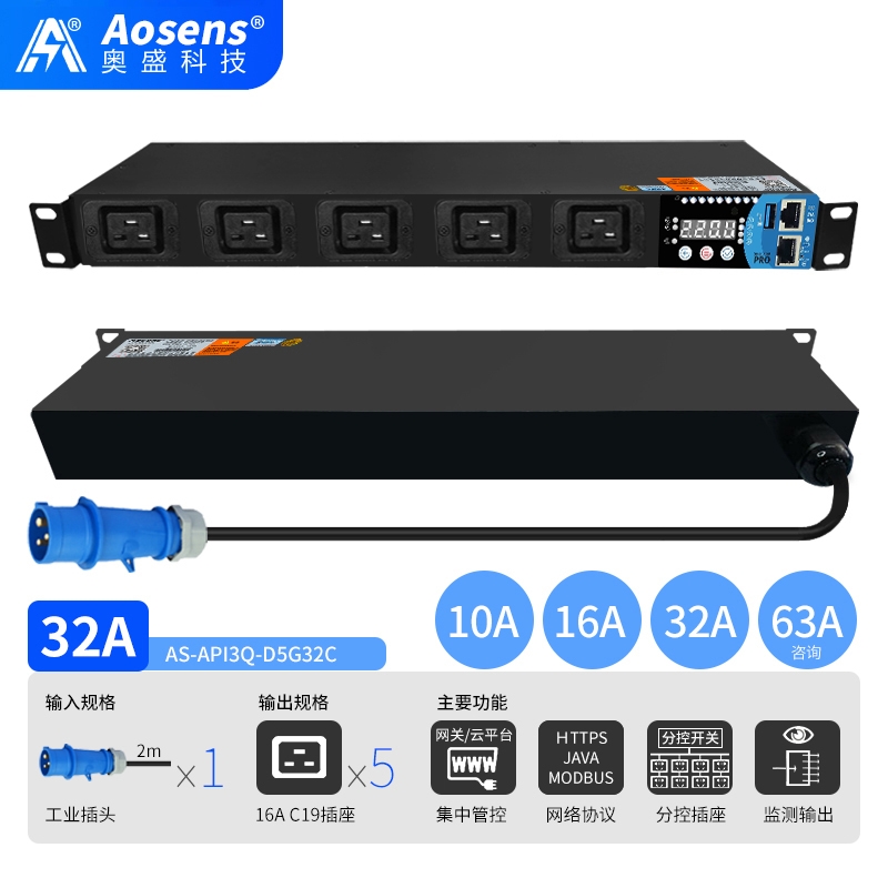 奥盛(Aosens)API3Q网络远程监控美标PDU电源插座美标智能时序控制定时物联网SNMP协议MODBUS