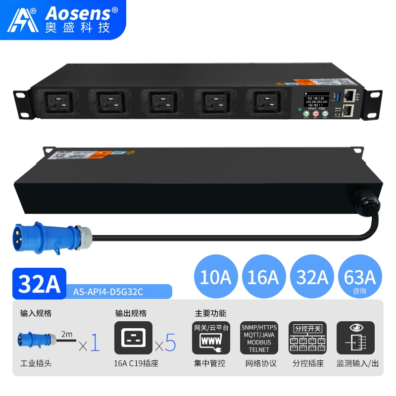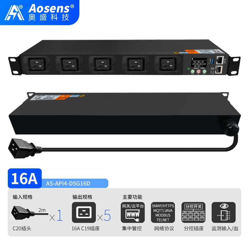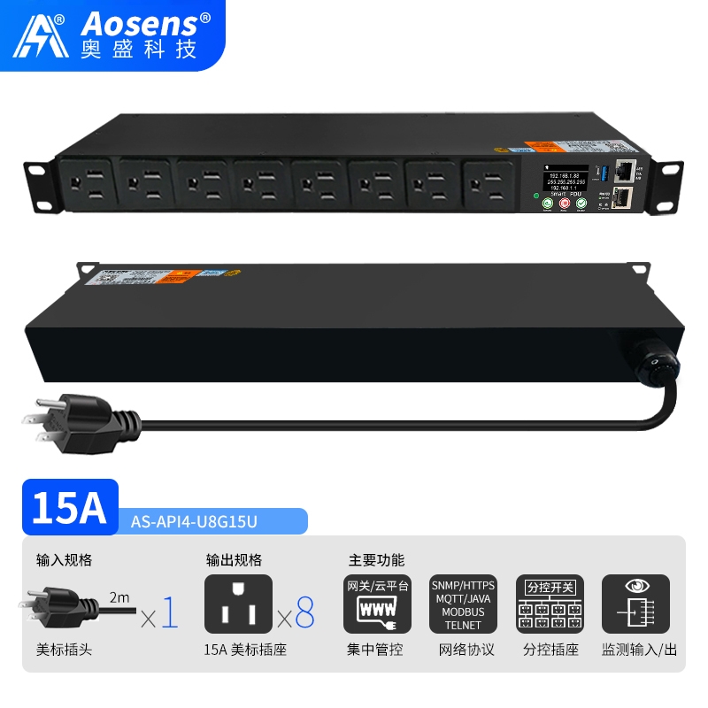 奥盛(Aosens)API4网络远程监控C19 PDU电源插座美标智能时序控制定时物联网SNMP协议MODBUS