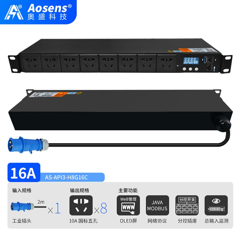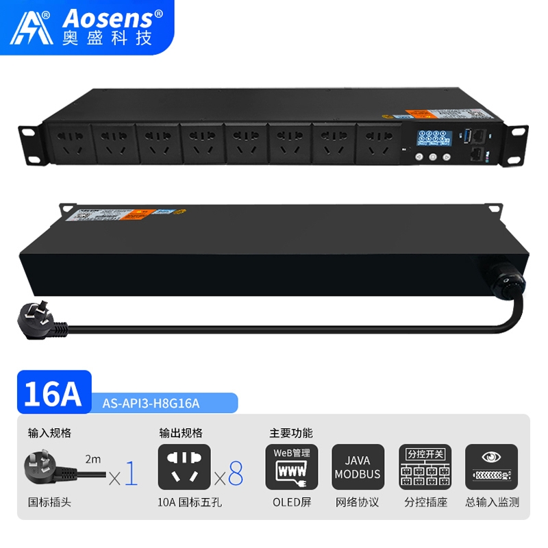 奥盛(Aosens)API3网络远程监控五孔PDU电源插座智能时序控制定时开关HTTP协议MODBUS