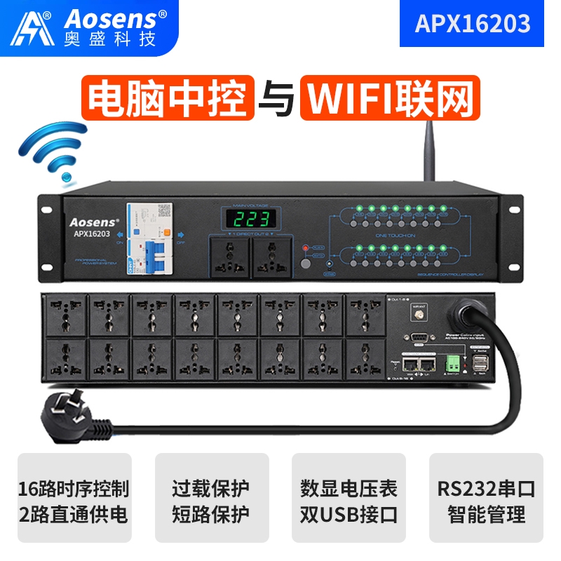 Aosens奥盛 APX16203 WiFi电源时序器动作延时上电KTV舞台会议远程控制器商用定制 18路