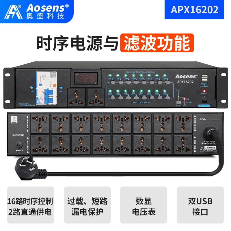 Aosens奥盛 APX16202 智能时序器电源动作延时上电会议控制KTV舞台PDU商用定制 18路