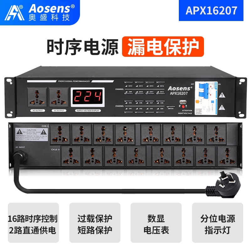 Aosens奥盛 APX16207 智能时序器电源动作延时上电会议控制KTV舞台PDU商用定制 18路