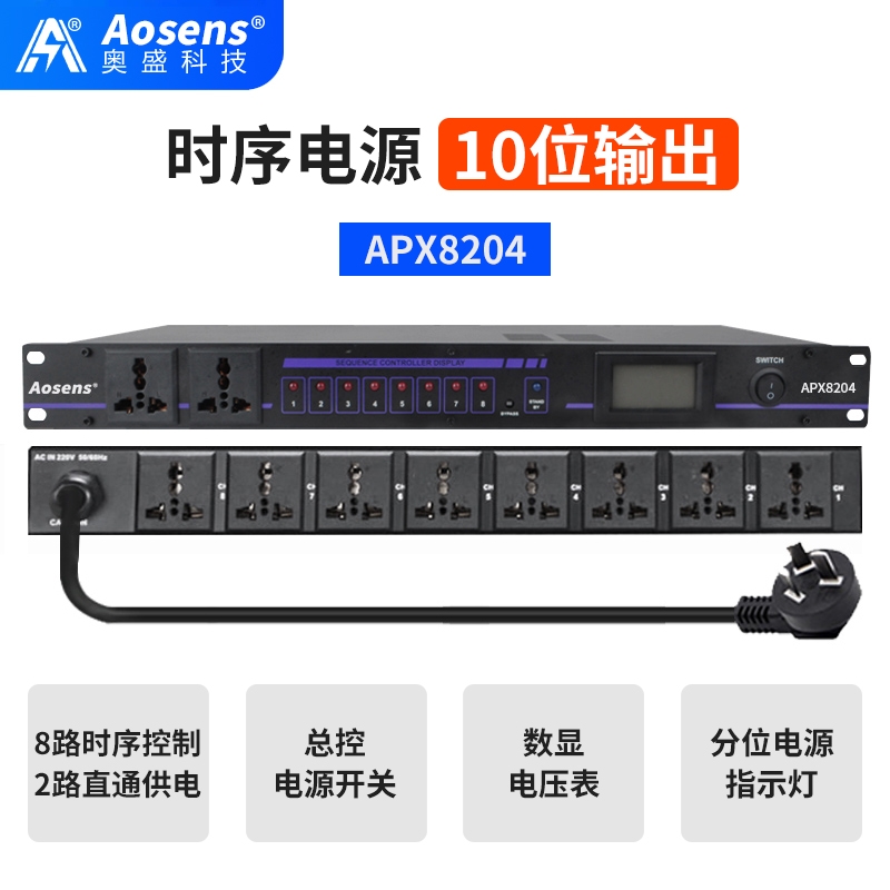 Aosens奥盛 APX8204 智能时序器电源动作延时上电会议控制KTV舞台PDU商用定制10路