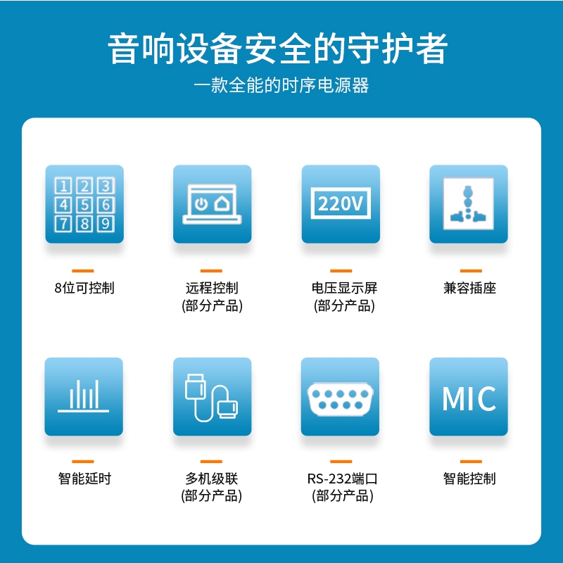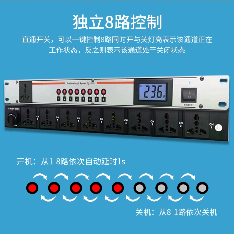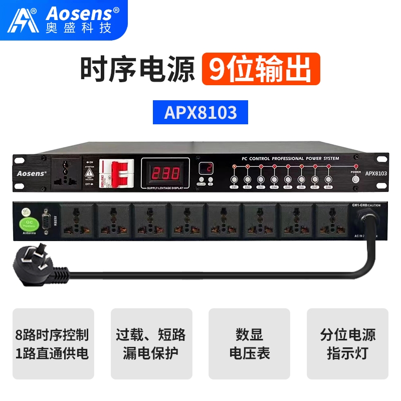 Aosens奥盛 APX8103 智能时序器电源动作延时上电会议控制KTV舞台PDU商用定制9路