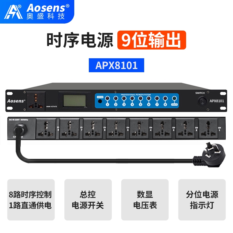 Aosens奥盛 APX8101 电源时序器 动作时序电源上电 中控电源控制 KTV舞台会议控制器商用定制 9位