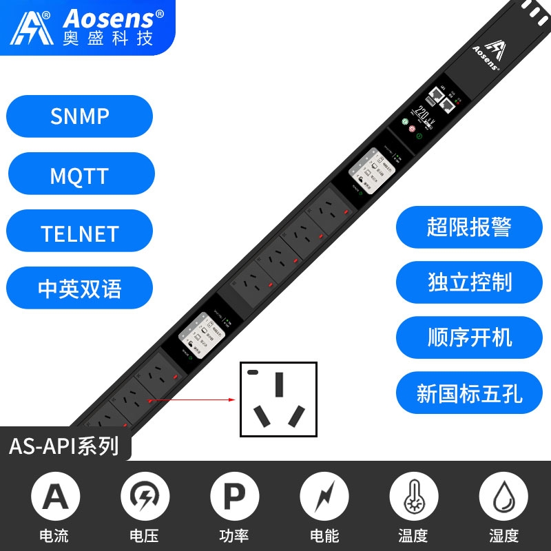 奥盛 API系列竖装智能网络远程监控PDU电源 8位国标三孔