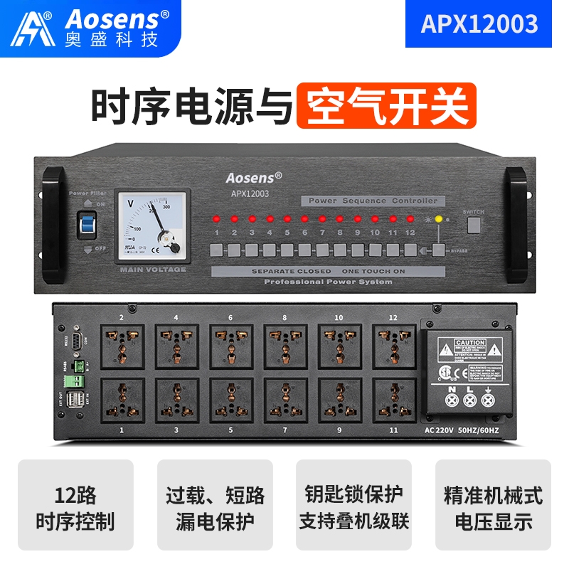 奥盛12路智能时序器电源动作延时上电会议控制KTV舞台PDU商用定制APX12003