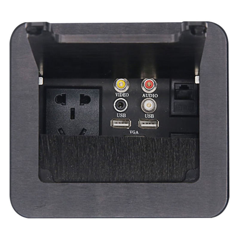 Aosens奥盛 毛刷翻盖桌面插座 会议防尘多媒体桌插 五孔电源 音视频 3.5音频 USB VGA 网络 AS-ZH-101A