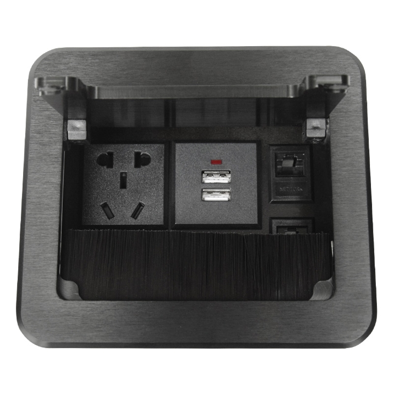 Aosens奥盛 毛刷翻盖桌面插座 会议防尘多媒体桌插 五孔电源 双USB 双网络 AS-ZH-101U