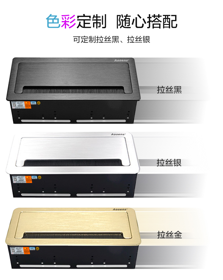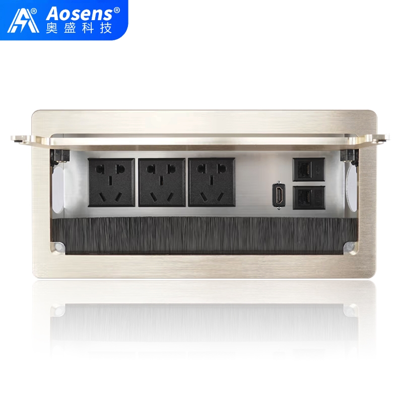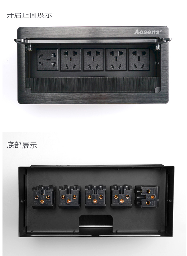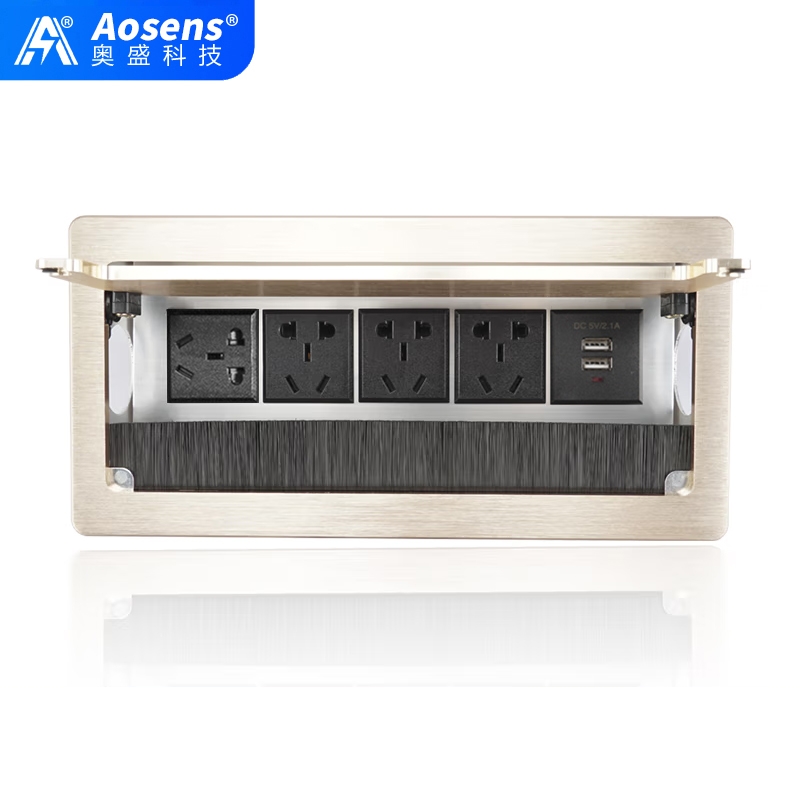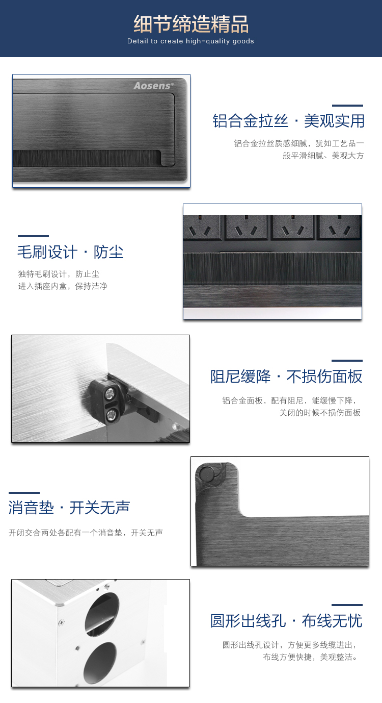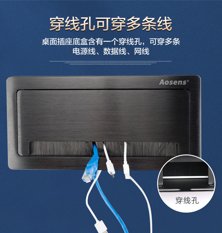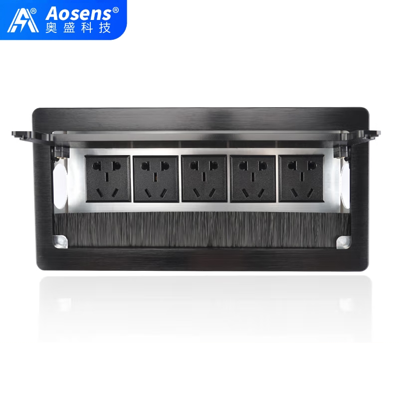 奥盛多功能桌面插座办公桌电源线盒翻盖毛刷嵌入台面面板104Y系列