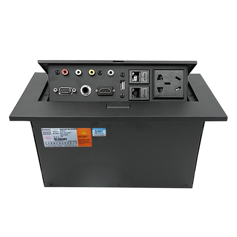 Aosens奥盛 弹起桌插信息盒会议桌插座 音视频 3.5音频 VGA 6.35话筒 HDMI USB 双网络 五孔电源 AS-ZH-500F