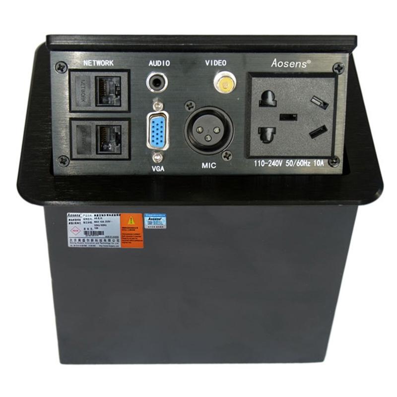 Aosens奥盛 气撑弹起式气压气动多媒体免焊桌面插座 双网络 3.5音频 VGA 视频 卡农公 五孔电源 AS-ZH-307D