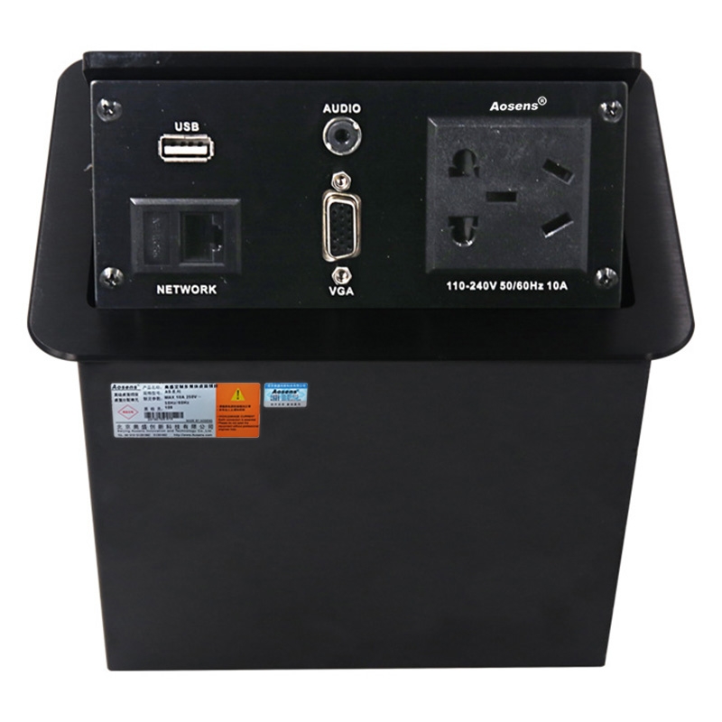 Aosens奥盛 气撑弹起式气压气动多媒体免焊桌面插座 五孔电源 网络 3.5音频 VGA USB AS-ZH-307F