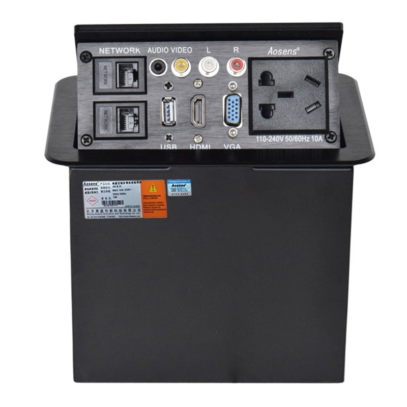 Aosens奥盛 气撑弹起式气压气动多媒体免焊桌面插座 五孔电源 双网络 音视频 VGA USB HDMI 3.5音频 AS-ZH-307J