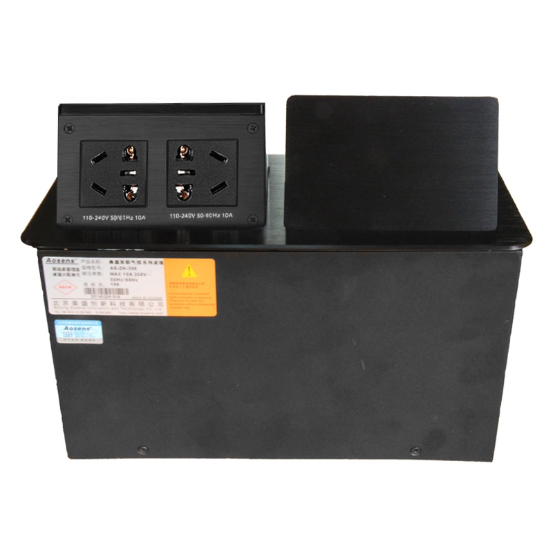 Aosens奥盛 多功能气撑桌面插座 反向弹起多媒体会议桌信息插 新国标五孔电源 AS-ZH-304B