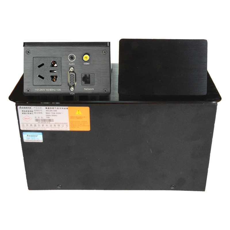 Aosens奥盛 多功能气撑桌面插座 反向弹起多媒体会议桌信息插 五孔电源 VGA 网络 3.5音频 视频 AS-ZH-304C